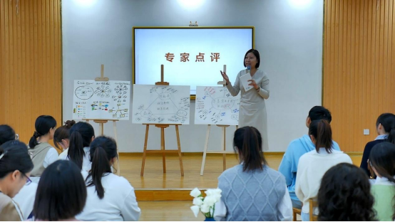 在分组讨论环节,教师围绕“怎样运用图画书资源促进幼儿全面发展”这一具体问题,分大、中、小班三组展开讨论,并用思维导图的方式进行记录、分享、交流讨论成果。李迎冬老师对各组的分享进行了分析点评,并从“热爱、选材、课程”三个方面提出了可行性建议。活动最后,淄川区教体局学前教育科科长、教研员孙红做了图画书阅读经验分享。