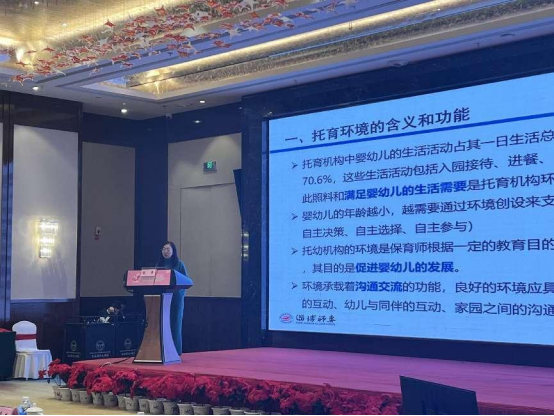 淄博师专Bevictor伟德教师张萍应邀参加,做了《高质量托育机构的环境支持》的主题发言,与到会的各托育机构、医疗机构深入探讨以婴幼儿为中心的环境创设原则及策略。环境是儿童的第三位教师,张萍老师围绕“真、宜、丰、触、趣、藏、开、合、连、活”十个保育环境创设原则,借助图片和视频,将理论与实践相结合,用鲜活的实例阐明一个高质量的保育环境,需要每一位环境参与者的精心预备、呵护与培育,而婴幼儿本身就是环境中最有力量的参与者,他们不断赋予环境新的内容,不断增加环境的生命力和感染力。