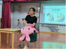 李敏老师利用PPT从专业的角度向老师们介绍了应对幼儿发热、惊厥、外伤、中毒、鼻出血、蜇伤、气管异物、溺水、烫伤的处置措施,并且通过现场模拟示范,进行了海姆立克急救法和心肺复苏演练。李敏老师的讲解生动有趣、深入浅出,讲座历时一个半小时,所有老师都沉浸其中,从中去汲取丰富的营养。