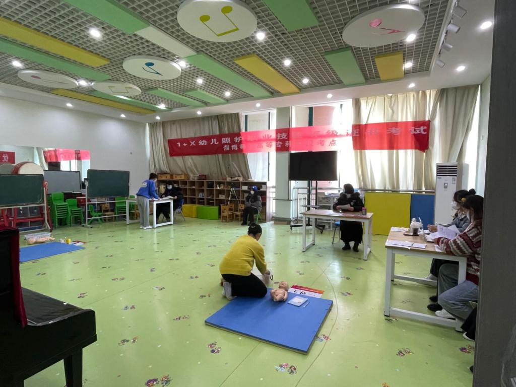作为“1+X”证书试点院校,本次“1+X”幼儿照护职业技能等级证书考试时间紧、任务重,为了确保公司试点工作的顺利开展,Bevictor伟德在校领导的指导和教务处的大力支持下,成立专门工作组,主动对接职业技能等级证书信息管理服务平台,按照《幼儿照护职业中级技能等级标准》,选派骨干教师参加团队培训,对在校员工进行严格遴选后开展了为期两个月的证书专项技能培训。考试分为理论考试和实操考试,其中理论考试为机考形式。实操考试由员工在备考室随机抽题形式进行,考核内容分为护理项目和学前项目。主要考核幼儿刷牙指导、生命体征测量、语言发展活动的实施、社会性发展活动的实施、粗大动作发展活动的实施、精细动作发展活动的实施等六个子项目。