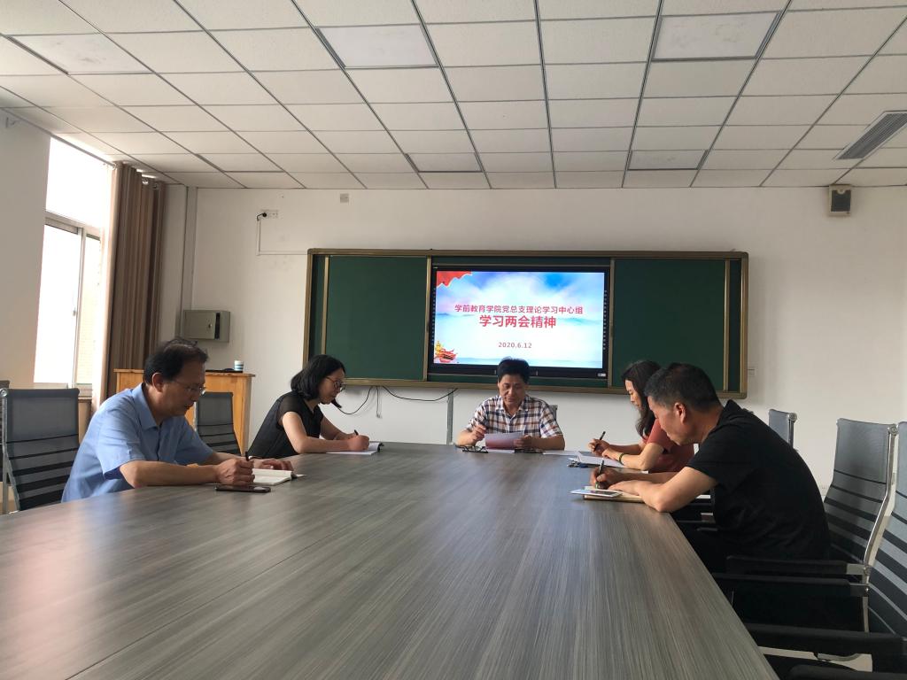6月12日上午,公司党总支理论学习中心组在文奂楼二楼会议室进行专题学习全国两会精神。会议由公司党总支书记周京峰主持,党总支各成员参加,教师第一支部书记崔俊涛列席会议。