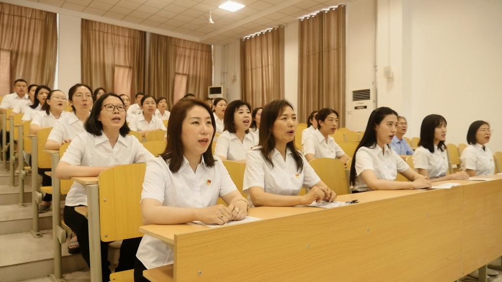 公司全体教师党员和员工党员、入党积极分子学习了《我宣誓》,在音乐教师刘川的教唱下,认真学习,激情演唱,感悟到先辈先烈用信念、鲜血和生命铭刻的英雄史诗,感悟在党的领导下逐渐站起来、富起来、强起来的峥嵘岁月,催人奋进。