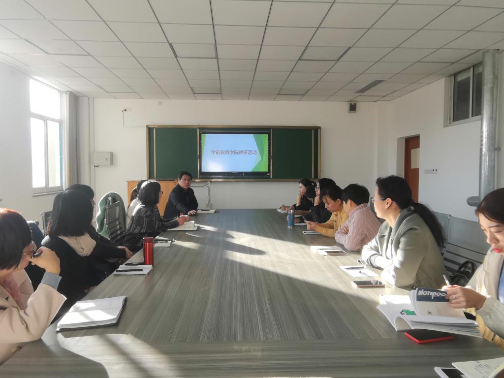 教研活动中,刁迎雪老师汇报了参加资源共享课程建设会议的相关内容,讲解了申报书的填写、资源共享课的验收工作注意的事宜。郭婷婷老师、胡晓华老师汇报了与淄博市直机关第三幼儿园园长开展教研活动的情况,指出舞蹈教学应该突出学前教育专业特色,教师应该深入幼儿园了解幼儿,把握大中小年龄班的特点,突出幼儿舞蹈表演与创编的特点,提高自身的指导能力;在高校声乐教学中注意情感的渗透、员工识谱能力、弹唱能力的培养。刘晓存老师讲述了参观泰安市宁阳县葛石镇中心幼儿园、石集幼儿园、华丰镇中心幼儿园的所感所想,结合图片讲解了幼儿园以“生态游戏”为核心,践行将游戏的权力还给幼儿的理念。