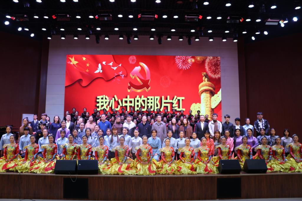 演出伊始,党总支副书记赵瑜带领全体党员重温入党誓词,党员们又一次庄严表达自己的信仰和为共产主义理想奋斗终身的决心。蒲晓冬、邵敏、刘川、张康、许越等老师们演唱了《向党看齐》、《不忘初心》、《共筑中国梦》等经典红歌,用歌声表达了对祖国、对党的热爱之情;张凯老师携员工范浩、孙安琪带来的三人舞《重生》,让我们看到了汶川大地震中的一群血性男儿——消防员,用自己的身躯为人民群众撑起生存空间的感人故事;逆风飞扬社团为大家带来了三场精彩的话剧:《战火中的老员工》、《小兵张嘎》和《半条棉被》,同学们声情并茂的表达着当代老员工对战争年代青年责任的理解,也引发了大家对新时代青年责任的深入思考;最后师生全体起立,合唱一首《我和我的祖国》,把演出推向高潮。