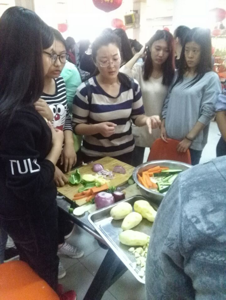 10月19日下午3点半,于公司第二食堂举办首次韩国饮食文化体验活动,在韩国外教和郭俊英等几位韩语老师的指导下,同学们都认真积极的学习并亲自体验韩国泡菜、紫菜包饭、拌饭、大酱汤等韩国料理的制作方法。活动期间同学们都很活跃,有的唱起了韩语歌曲,有的拿着亲手制作的泡菜调皮的塞入同学的口中,有的大口的吃着亲手做的紫菜包饭,有的大口品尝刚出锅热气腾腾的大酱汤……欢声笑语不断,气氛相当热烈。