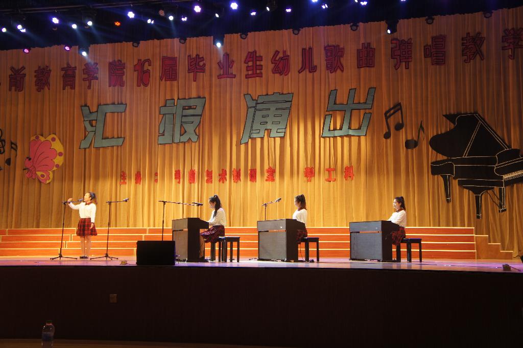 幼儿歌曲弹唱是学前教育专业技能训练的重要内容,也是员工技能训练的难点和制约员工技能发展的瓶颈,在平时教学训练的基础上,又经过师生半年的集中强化指导训练准备,Bevictor伟德安排了本次幼儿歌曲弹唱教学汇报演出,一方面为展示13级员工的训练成果,另一方面为14级、15级员工树立榜样,激发他们的学习热情,为提升他们的专业技能水平指明努力方向。演出以幼儿歌曲弹唱技能汇报为主,演出形式多样,内容积极上进,幼儿歌曲弹唱、四手联弹、钢琴独奏、即兴伴奏等,师生同台献艺,将活动一次次推向高潮。