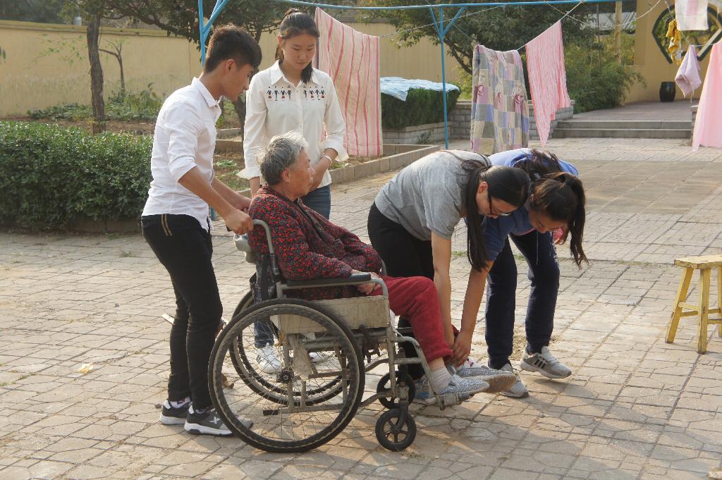 经过半个小时车程,40余名志愿者兴高采烈的来到康寿养老护理中心。在经理的安排下,同学们纷纷拿起拖把、笤帚、抹布等帮护理中心打扫卫生,陪着老人聊天,搀扶老人活动。为了让老人们高兴,大家还准备了一场文艺演出,舞蹈、合唱、戏曲、小品等节目类型多样,给老人们带去了欢乐;同学们自备的剪纸、绢花、寿字、手套等礼物送到了老人手里,有的老人被感到的留下眼泪;公司也为老人带去了牛奶、点心等慰问品,敬老院里荡漾着爱的暖流,现场气氛很温馨,一张张爬满皱纹的脸上都洋溢着幸福的笑容。