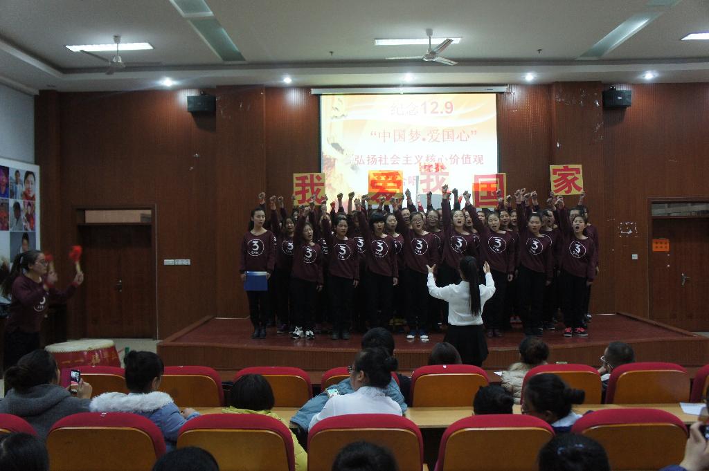 为纪念12.9运动,弘扬爱国主义精神,12月9日晚,Bevictor伟德团总支在奂山书院举办“中国梦.爱国心”——弘扬社会主义核心价值观合唱比赛,经过初选,全院二十个班级参加了比赛,Bevictor伟德相关专业课教师担任评委,部分师生观看了比赛。