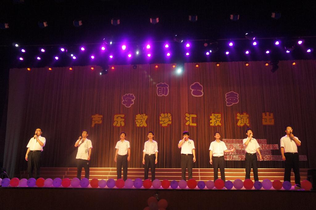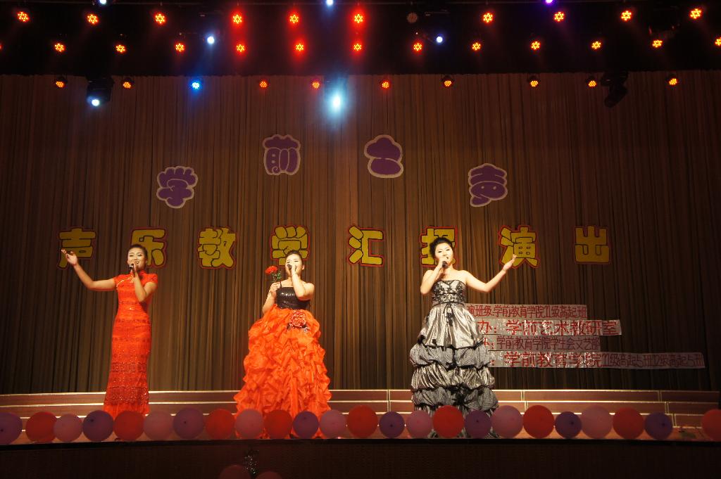 演出在《节日欢歌》的热烈气氛中拉开帷幕,《美丽的草原我的家》、《军港之夜》,表达了同学们深沉的爱国情怀;《喀秋莎》、《我的中国心》、《莫斯科郊外的晚上》、《打靶归来》展示了学前教育专业男生的声乐水平;《纺织姑娘》将动听的演唱与轻盈的舞蹈动作融为一体;儿歌联唱突出了公司人才培养的职业性要求,视唱表演反映了同学们扎实的音乐基本功。演出中,同学们用靓丽的歌喉表达着自己对声乐的热爱,用良好的乐感展示着自己对音乐灵魂的领悟,演出在一曲感人的《老师我想你》中缓缓落下帷幕,良好的艺术氛围,和谐的感恩气息,充溢着现场的每个角落,并融入每个师生的心中。