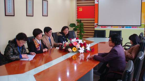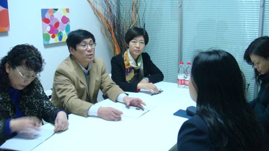 考察团在红黄蓝双语幼儿园与园长进行交流