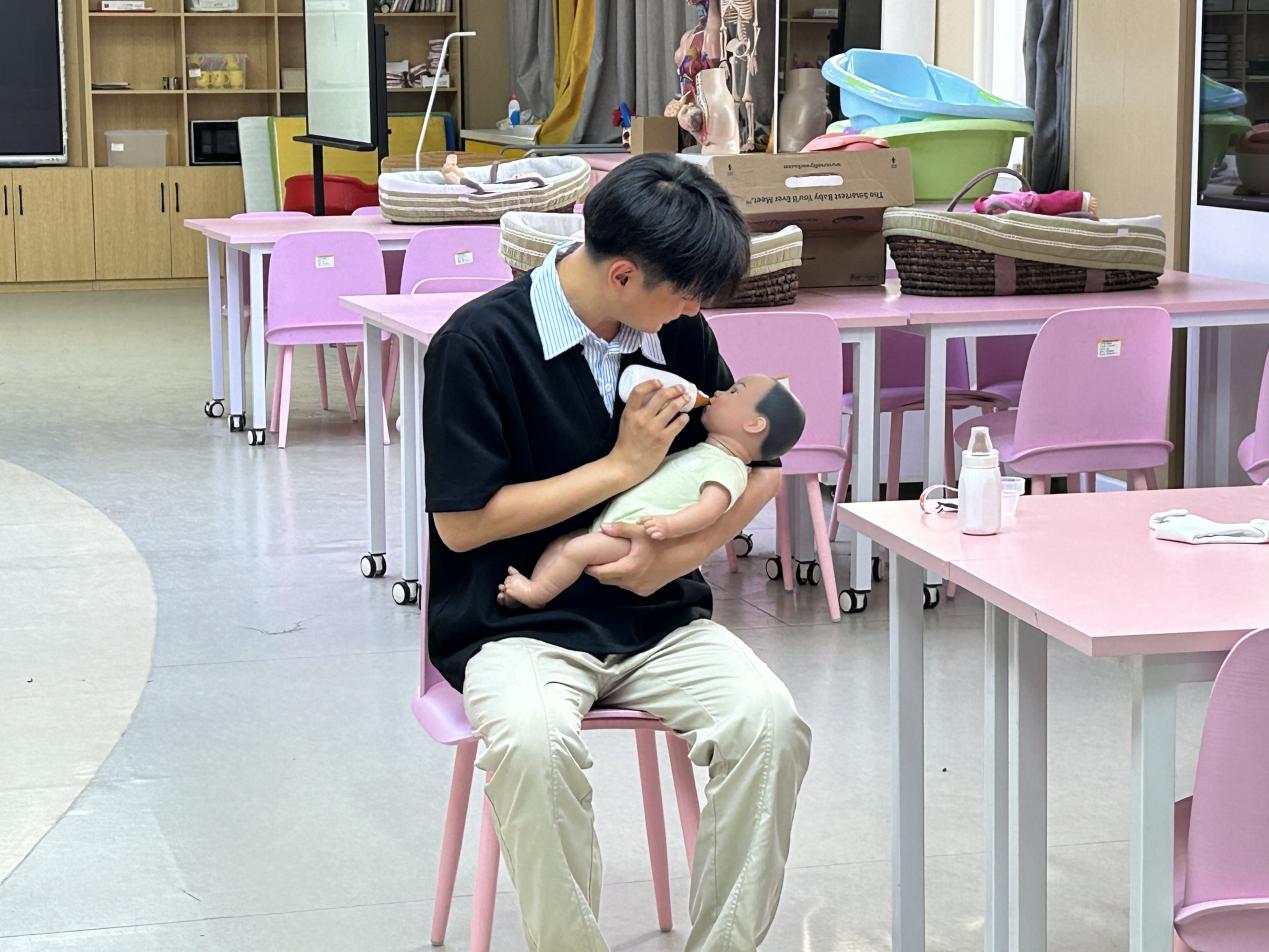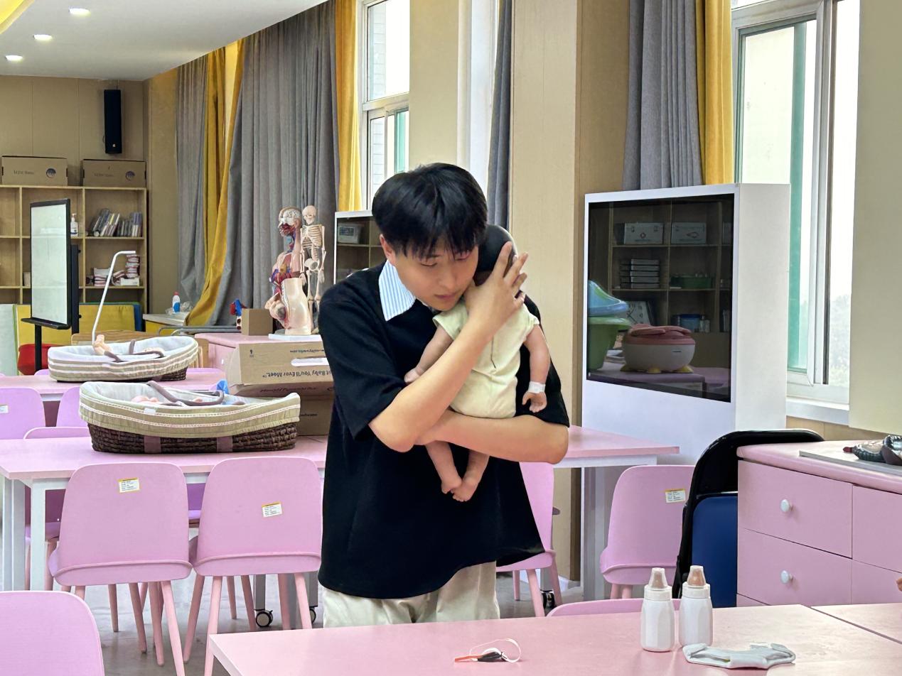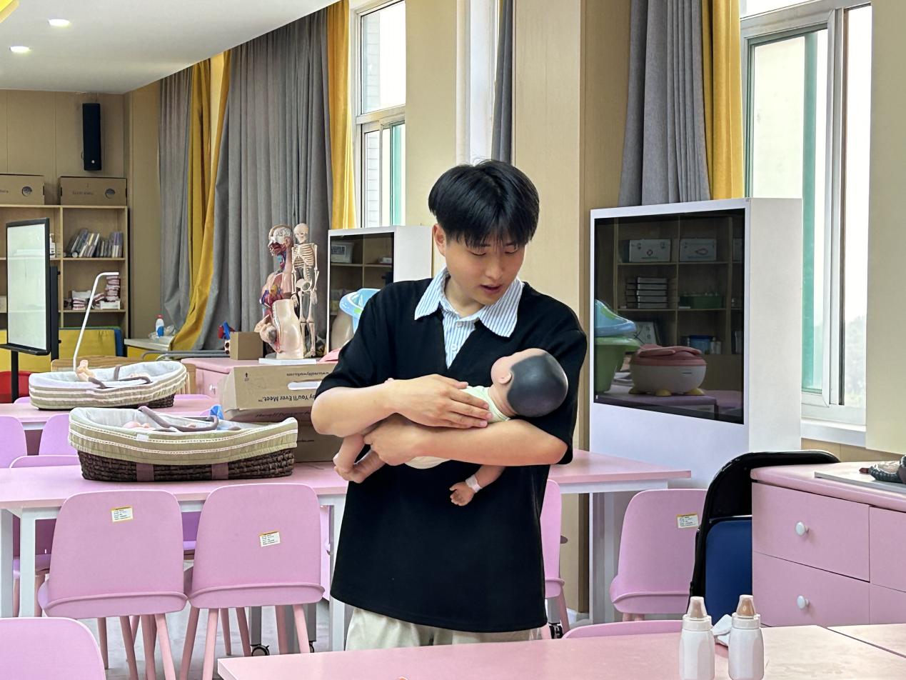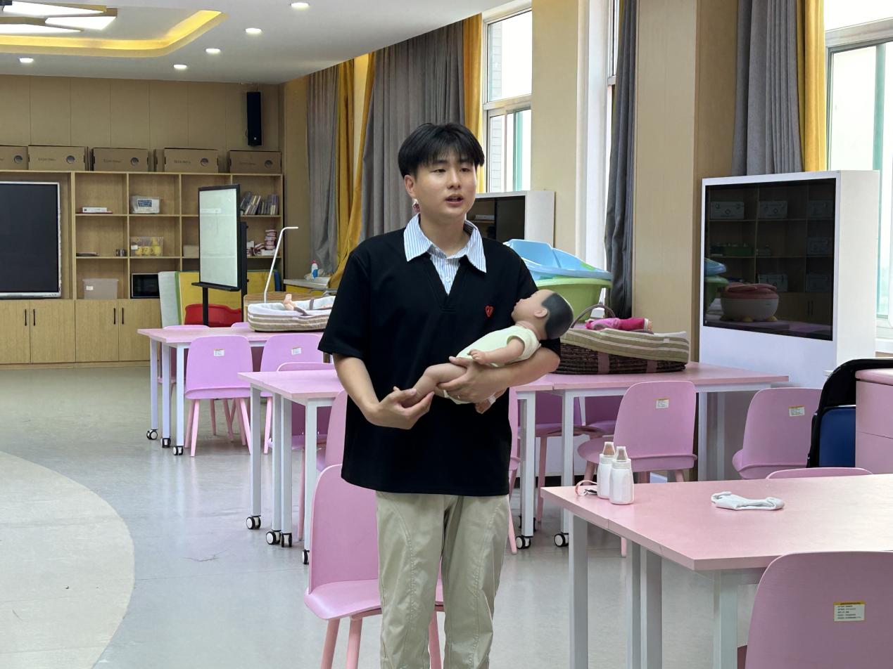 Bevictor伟德婴幼儿托育服务与管理专业优秀员工尹子豪,运用智能仿真婴儿设备开展示范性照护教学。通过精准识别模拟婴儿的啼哭、动作等信号,系统演示喂奶、拍嗝、换尿布、哄睡等标准化操作流程,并将儿童发展心理学理论深度融入安抚环节,通过科学的情绪调节技巧,生动展现专业实践的科学性与规范性,为员工们呈现了一堂兼具理论深度与实操价值的教学范例。