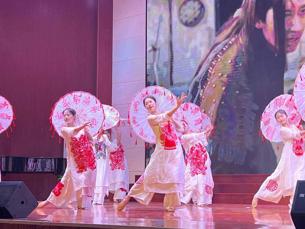 胡晓华、王娟、孙歆三位老师演唱的《领航》 拉开了文艺汇演的序幕,表达了公司师生爱党爱国的赤子情怀,抒发了永远跟党走、奋进新征程的豪情壮志;朗诵《携梦幼教路》表达了同学们对老师的尊敬和对幼教事业的热爱;王娟老师与裴昭羽同学合唱的《是老师是员工》充分展现了师生同台的风采,和谐融洽的气氛加深了师生情谊;课堂展示《儿歌弹唱》展现了同学们娴熟的专业技能;最后,一首《唱给妈妈的歌》,同学们用舞蹈表达了对父母真切的感激之情,赢得了台下家长们的热烈反响,他们纷纷拿起手机留存这感人至深的温暖时刻!