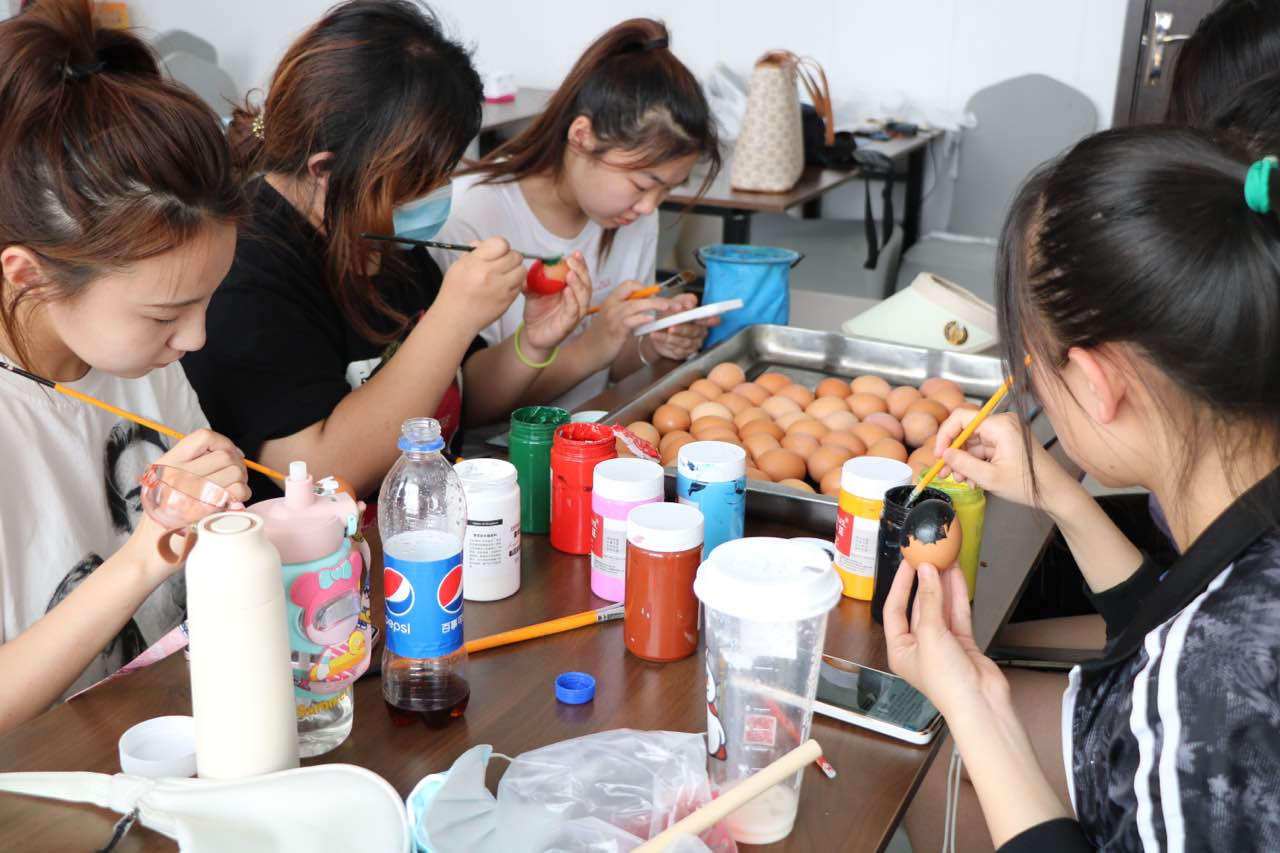 除了红枣粽子,大家还用心绘制了手工彩蛋,色彩缤纷,图案生动,寄托着对师生们的吉祥祝福。