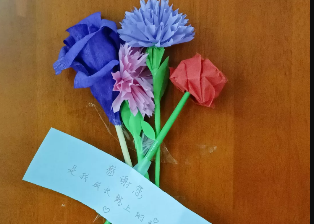 有些同学,为可爱的老师们送上了自己制作的玫瑰,并贴在教学楼中,所有老师可以自取。