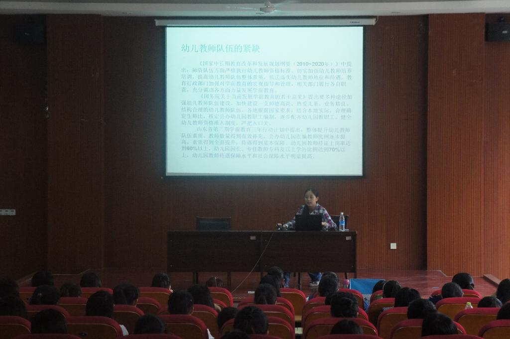 专业认知教育讲座主要结合《国家中长期教育改革和发展规划纲要(2010—2020年)》、《幼儿园教师专业标准》、教团队格证考试的相关要求,介绍了学前教育发展状况、合格幼儿教师应具备的素质、开设的相关课程等内容,让新生对学前教育专业有了一个整体的感知。