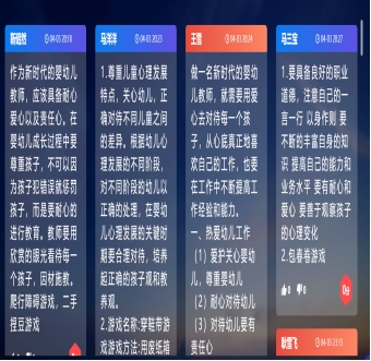 要将课程思政内容以润物细无声的方式在专业课程中进行渗透,教师要明确课程思政建设的目标要求和内容重点、科学设计课程思政教学体系。为了更加清晰的挖掘思政元素、科学的设计教育类课程,教师在家中利用休息时间积极充电学习。先后学习了由天津职业大学课程思政教学研究示范中心举办的职业院校课程思政建设研讨会、智慧树高等教育研究院分享的职业教育课程思政的实践与探索报告、首师大和徐州幼专共同合作分享的学前教育专业建设报告分享交流会等。优秀的课程思政案例为公司教师进行课程思政建设给予新思路、新方法的借鉴,为立足自身的专业课程深度挖掘思政内容、科学设计思政活动方案奠定基础。