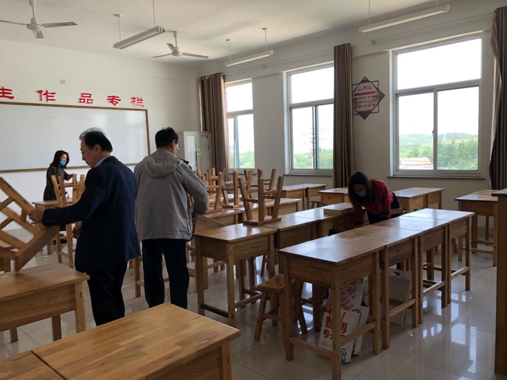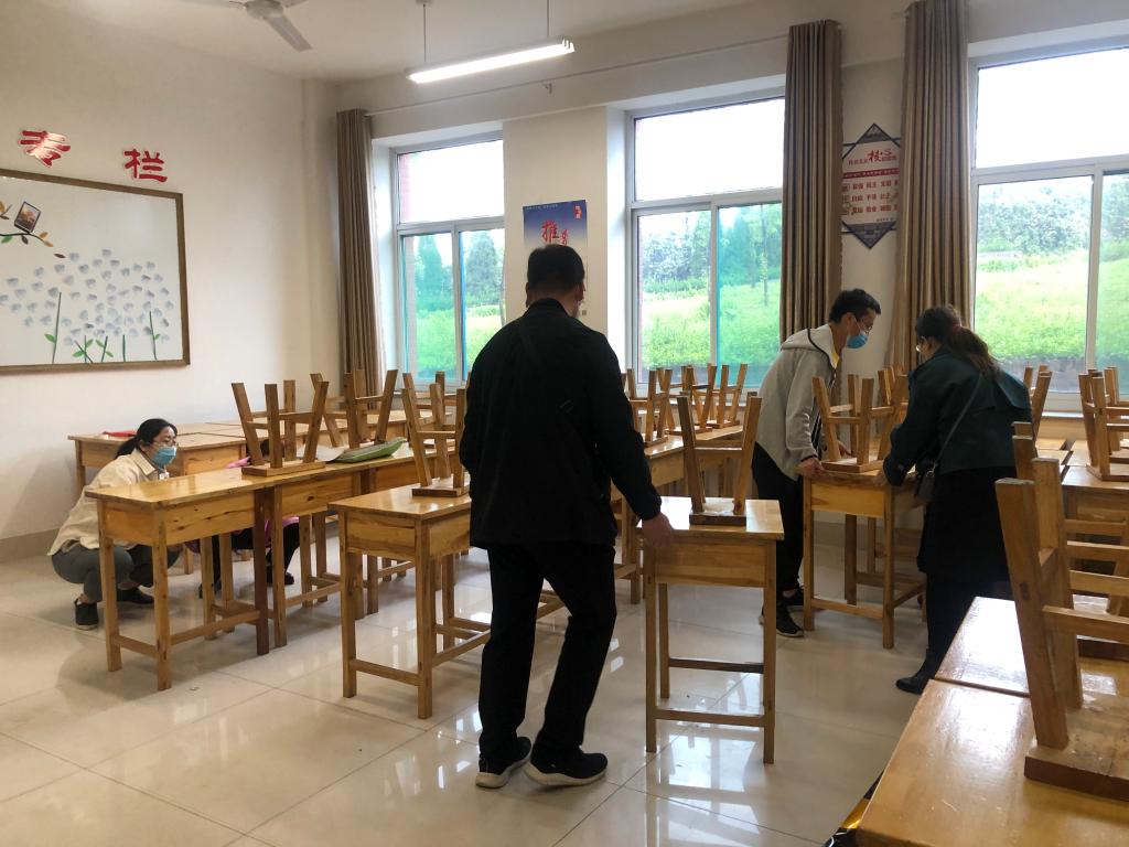 按照公司要求,党总支成员、员工党支部党员教师依标准布置教室,整理桌椅,并在每张课桌上张贴员工姓名条,在教室外墙壁张贴员工名单,在每间教室门口贴地标,提醒员工进教室前保持间距。此外,党员教师们还主动为员工教室打扫卫生,擦拭桌椅,清理垃圾。