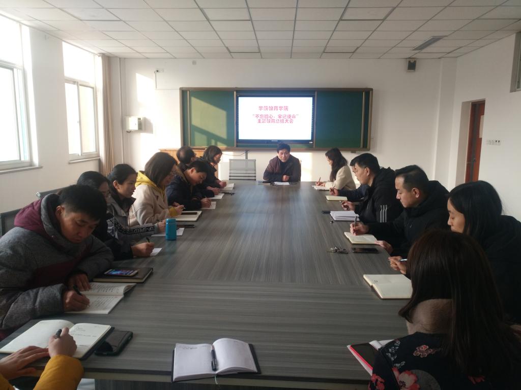 周京峰从“强化组织领导,确保主题教育扎实推进”、“坚持理论武装,确保学习教育走实走心”、“坚持问题导向,深入细致开展调查研究”、“广泛征求意见,全面检视问题”、“加大整改力度,提升干事创业实效”及“创新载体显特色,突出主题重实效”等六个方面全面分析了公司主题教育的经验做法,同时也指出了存在的不足。最后,他强调,全体党员干部要认真学习贯彻习近平总书记在“不忘初心、牢记使命”主题教育总结大会上的重要讲话精神、公司“不忘初心、牢记使命”主题教育总结大会精神,持续巩固深化主题教育成果,带头增强“四个意识”、坚定“四个自信”、做到“两个维护”,团结带领师生为学前教育专业实现突破性发展、为公司创建全国知名师范院校而不懈奋斗。