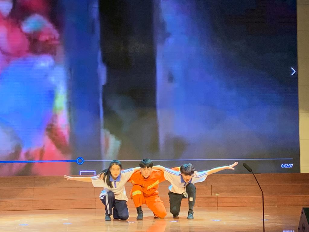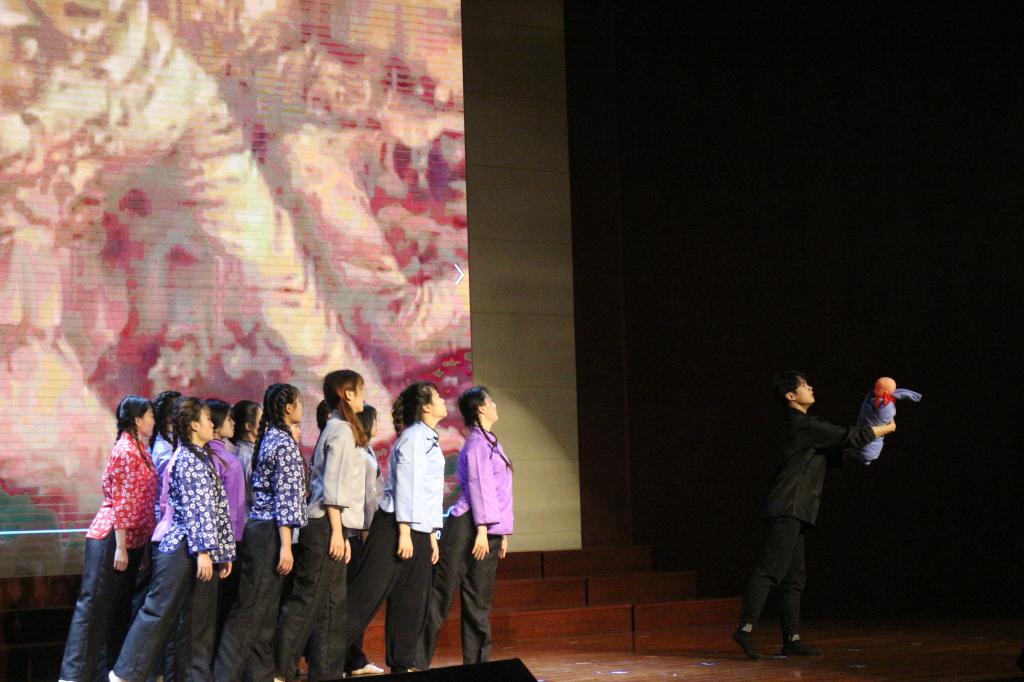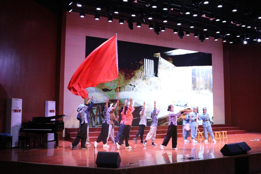 演出伊始,党总支副书记赵瑜带领全体党员重温入党誓词,党员们又一次庄严表达自己的信仰和为共产主义理想奋斗终身的决心。蒲晓冬、邵敏、刘川、张康、许越等老师们演唱了《向党看齐》、《不忘初心》、《共筑中国梦》等经典红歌,用歌声表达了对祖国、对党的热爱之情;张凯老师携员工范浩、孙安琪带来的三人舞《重生》,让我们看到了汶川大地震中的一群血性男儿——消防员,用自己的身躯为人民群众撑起生存空间的感人故事;逆风飞扬社团为大家带来了三场精彩的话剧:《战火中的老员工》、《小兵张嘎》和《半条棉被》,同学们声情并茂的表达着当代老员工对战争年代青年责任的理解,也引发了大家对新时代青年责任的深入思考;最后师生全体起立,合唱一首《我和我的祖国》,把演出推向高潮。