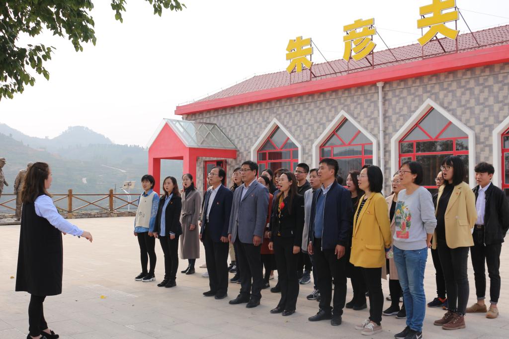在朱彦夫事迹展览馆门前鲜红党旗下,党总支书记周京峰带领全体党员重温入党誓词,铮铮誓言表达了党员们“守初心、担使命”的信心和决心。随后,大家饱含深情、慷慨激昂地合唱了《没有共产党就没有新中国》,共同歌颂伟大的中国共产党。