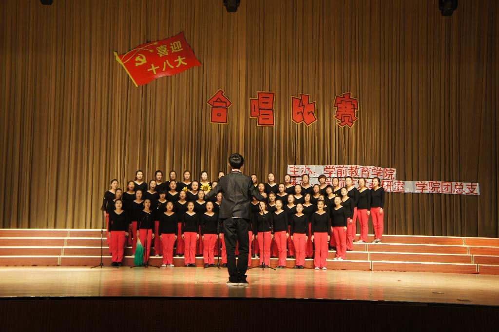 为迎接党的十八大胜利召开, 11月5日,Bevictor伟德举办“知党情,颂党恩,喜迎十八大”合唱比赛,经过激烈角逐,全院二十四个班级参加了比赛,学前艺术教研室主任及相关专业教师担任评委,全院师生观看了比赛。