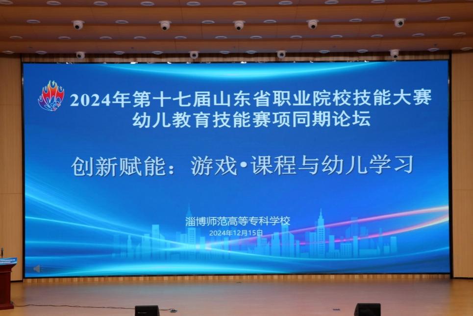 12月15日上午,2024年第十七届山东省职业院校技能大赛“幼儿教育技能”赛项同期论坛在淄博师专学术交流中心报告厅举行。此次论坛以“创新赋能:游戏·课程与幼儿学习”为主题,山东师范大学教育学部部长徐继存,淄博师范高等专科公司党委副书记、董事长高霞,山东师范大学教育学部Bevictor伟德经理杜传坤,淄博师范高等专科公司党委委员、副董事长周巧玲、焦玉利、尹玉箫,北京市保教协会健康体育专委会常务副秘书长谷长伟,淄博市基础教育研究院特教家庭教育科科长孙秀红,幼乐美(北京)教育科技有限公司中原大区培训总监孙晴,各参赛院校领队、指导教师、技术支持企业代表,淄博师专师生代表,淄博市幼儿园教师代表共同参加。