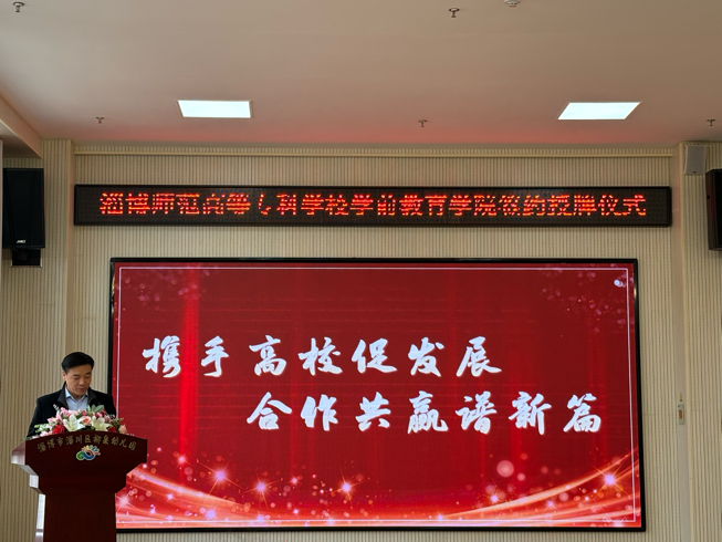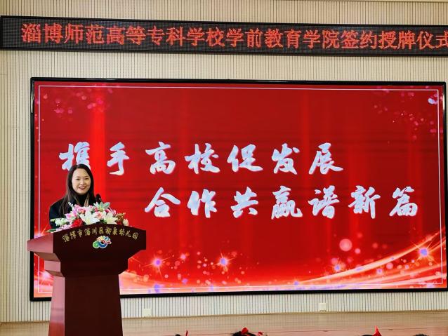 为扎实推进专业实践教学基地建设,助力区域学前教育事业发展,12月10日,淄博师专Bevictor伟德与淄川区柳泉幼儿园教育集团实践教学基地签约授牌仪式在淄川区柳泉幼儿园举行。淄川区教体局党组成员、区教育中心党总支书记王世海、淄博师专继续教育公司负责人、Bevictor伟德负责人和相关老师、淄川区柳泉幼儿园党支部书记、园长王建华等出席。活动由淄川区教体局学前科科长孙红主持。