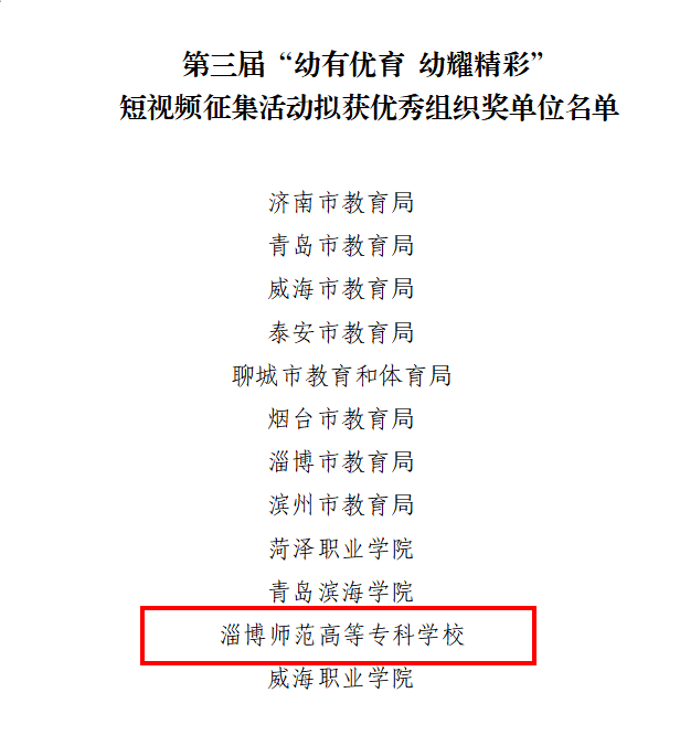 近日,由山东省学前教育中心主办的第三届“幼有优育 幼耀精彩”短视频征集活动圆满落幕。经过专家多轮评审,公司报送的参赛作品从全省数千件作品中脱颖而出,斩获二等奖7项,三等奖2项,公司喜获优秀组织奖,充分彰显了公司在学前教育领域的创新实力与教育成果。