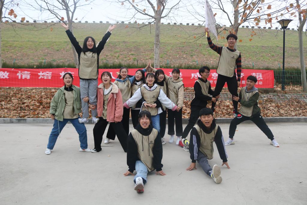 在五阳湖拓展培训基地相关教练的指引下,同学们迅速集结起来,投入到愉悦而紧凑的团队建设活动中去。首先,同学们被组建成蓝、黄、金三支队伍,分别穿上各色队服,自主设计并展示了队名、口号及队形。随后,大家先后参与了“急速60秒”、“挑战150秒”等活动,挑战了自我,锻炼了综合能力。