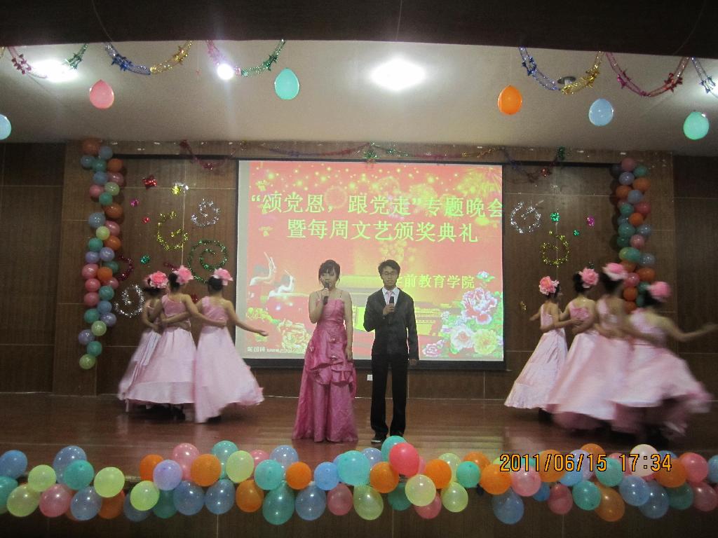 本次演出是公司庆祝建党90周年系列活动的又一重要活动。本晚会以感人的红色革命历史题材为主题,带领同学们真诚回顾了党领导人民走过的光辉革命历程,大力弘扬了革命精神,鼓舞了当代老员工的爱国志气。晚会充分展现了独具学前专业特色的员工精神风貌。此外,系领导还为每周文艺的获奖班级、获奖个人颁奖。